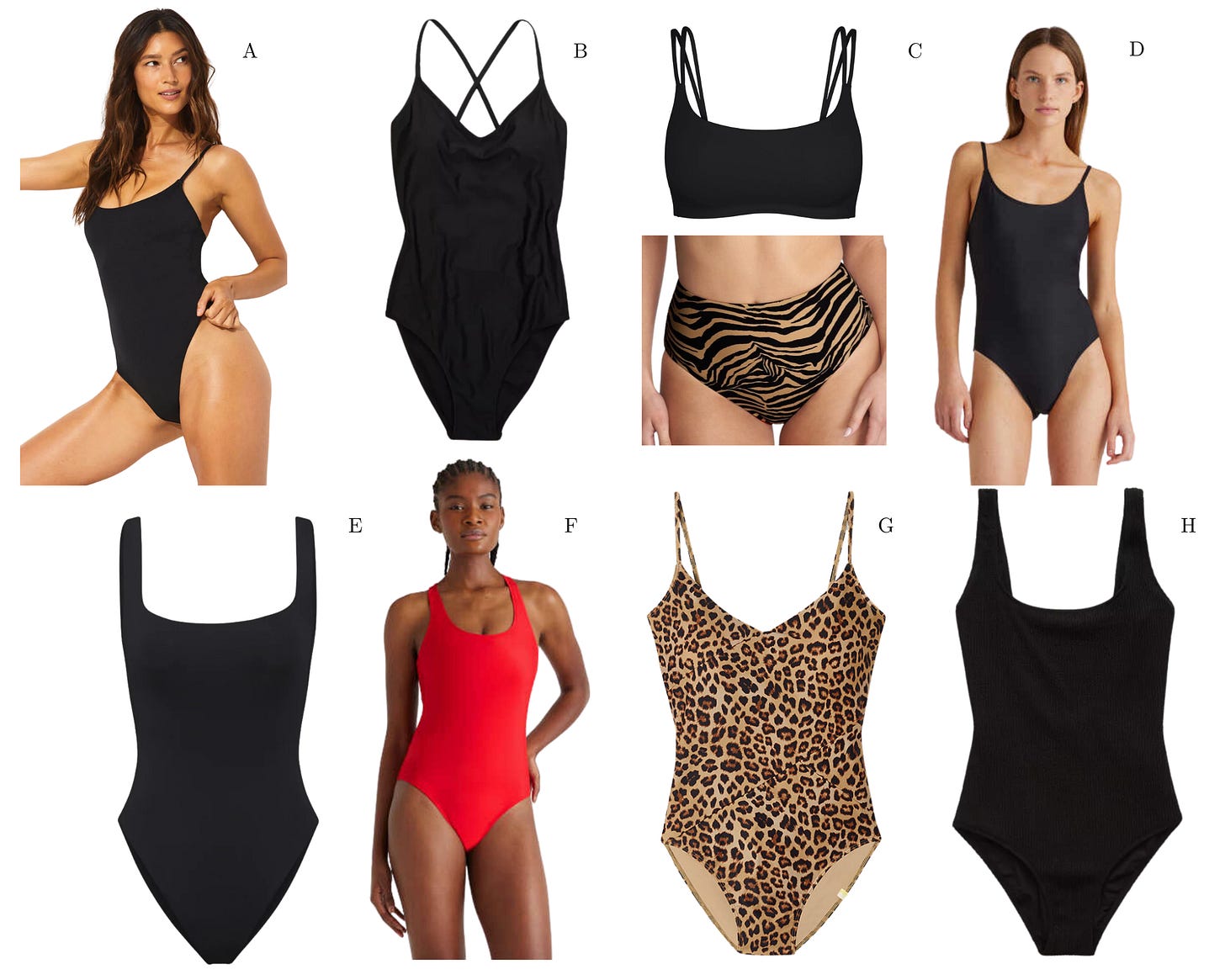 I just got back from Hawaii and I spent the few weeks prior to my trip, trying to find the perfect bathing suit. Now, I wish I was a Hunza G girl, but these days, I need more support and I have yet to find a ‘crinkle’ suit that works for me. Specifically, I’m looking for something to suck me in, hold me up on top and fit my long torso… all while not looking too conservative/mom-ish. Essentially the unicorn of swimsuits. I focused solely on super basic suits in mostly black and I found a couple of winners! I did a try-on for my mom and didn’t tell her the prices and (surprise!) she still picked the most expensive one!